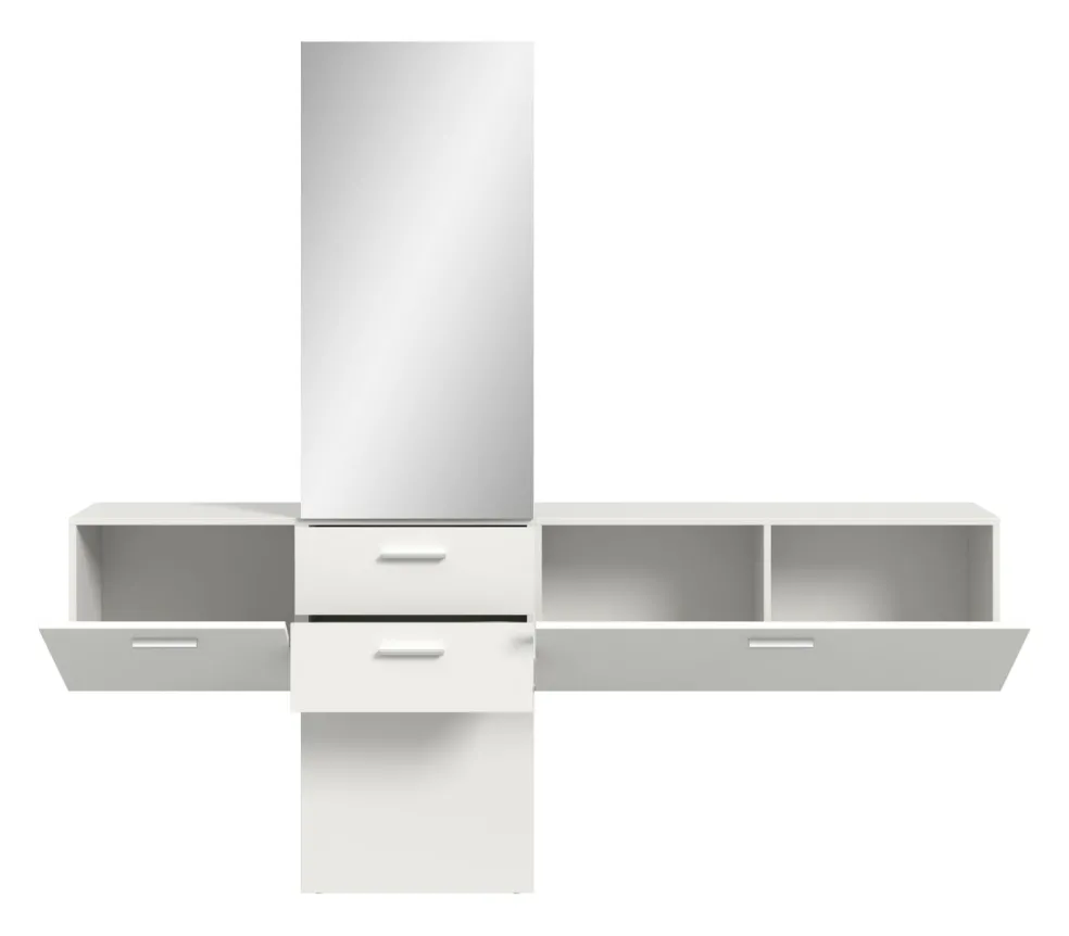 1 vestiaire compact avec 2 tiroirs, 1 miroir, 1 tablette et 1 barre de penderie