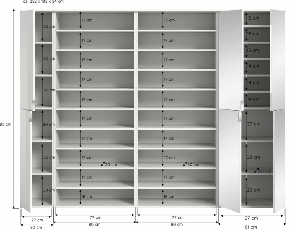 2 étagères à chaussures avec 8 tablettes amovibles et 1 tablette fixe chacune