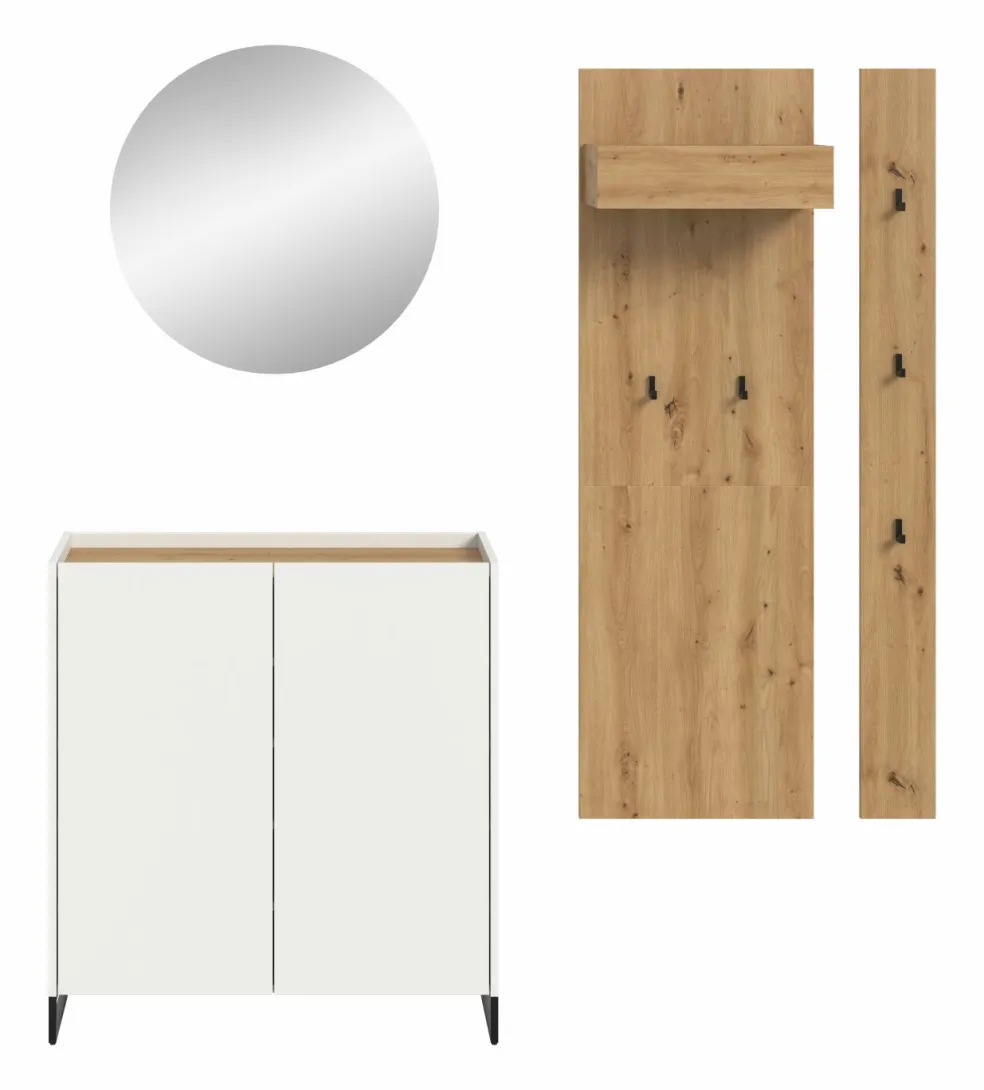 Façade : ton blanc et décor chêne Artisan / miroir