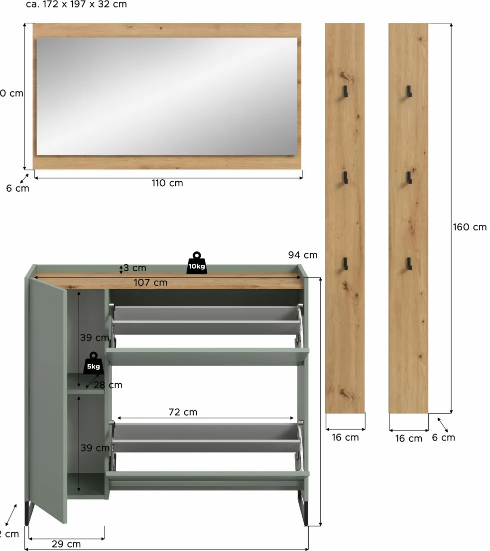 | Meuble à chaussures | 110 | 94 | 32 |