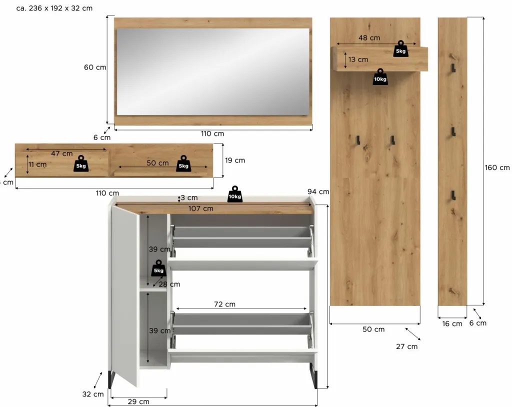 | Meuble à chaussures | 110 | 94 | 32 |