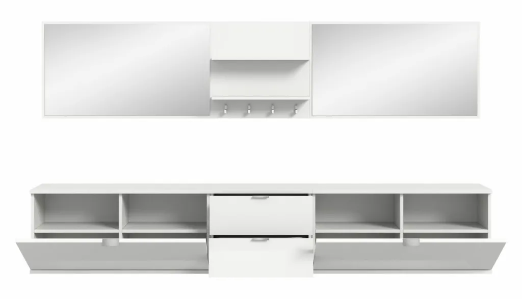 2 bancs à chaussures avec 1 abattant et 2 tablettes amovibles chacun