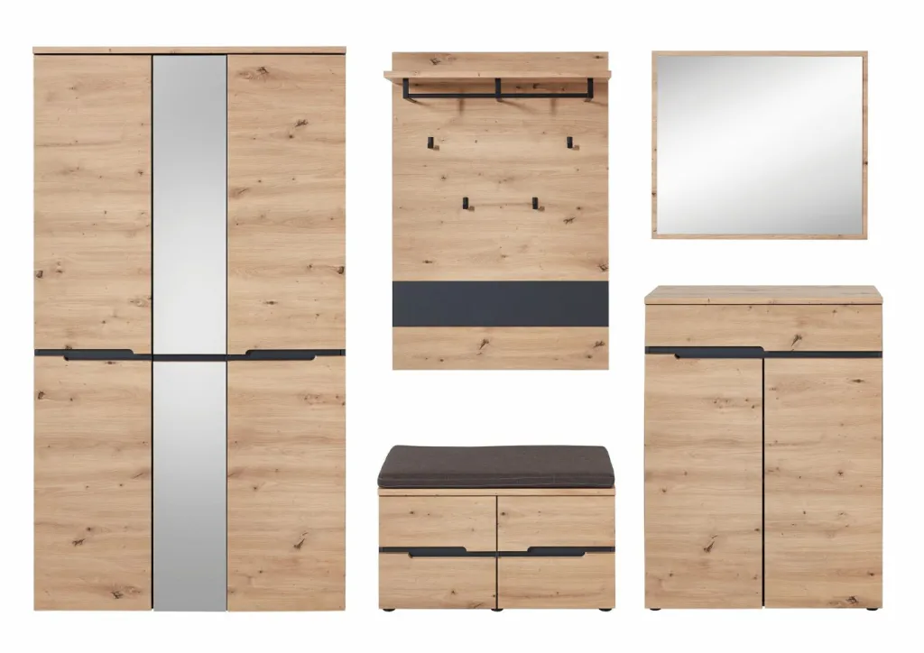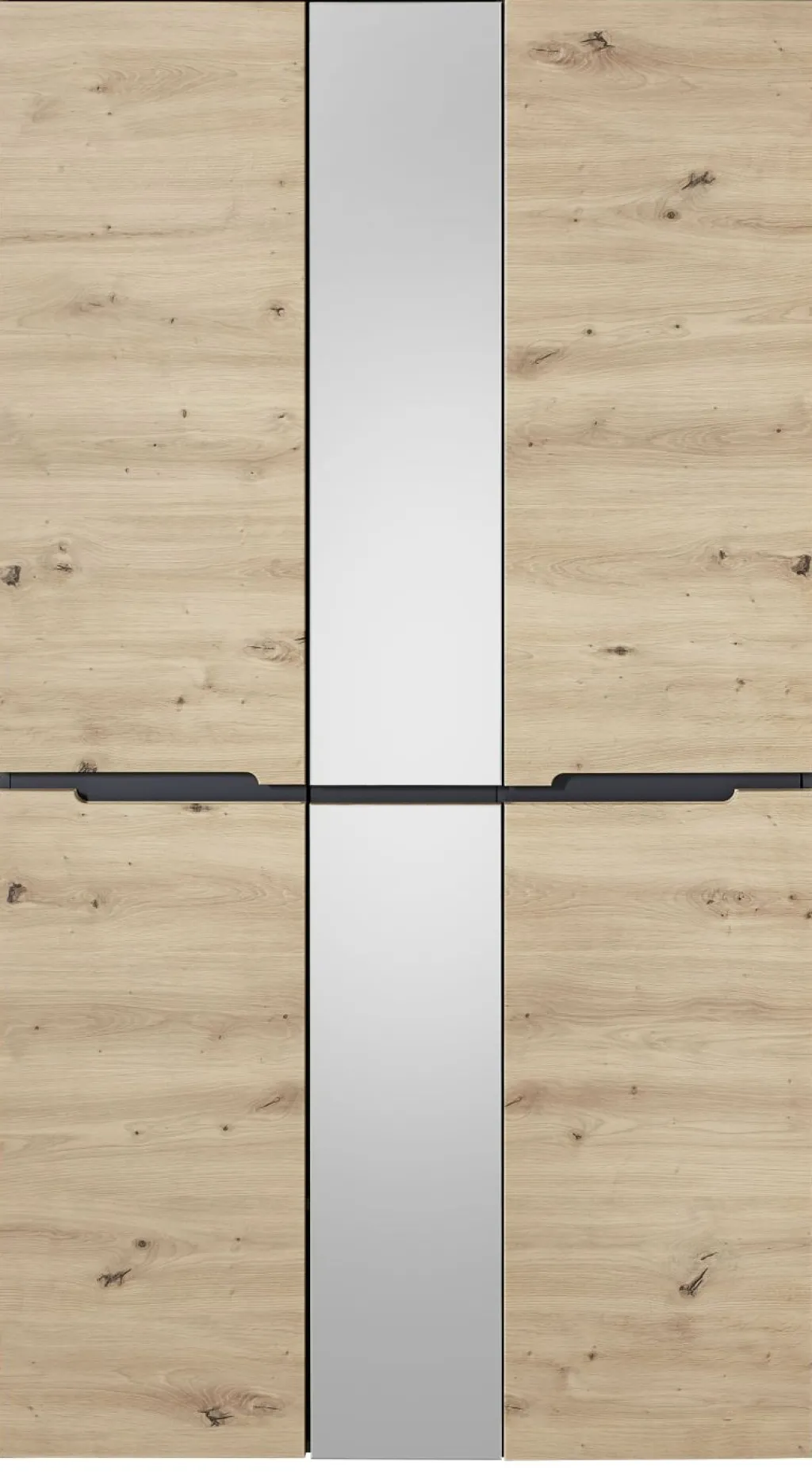 Façade : MDF décor chêne Artisan et contrastes ton graphite / miroir