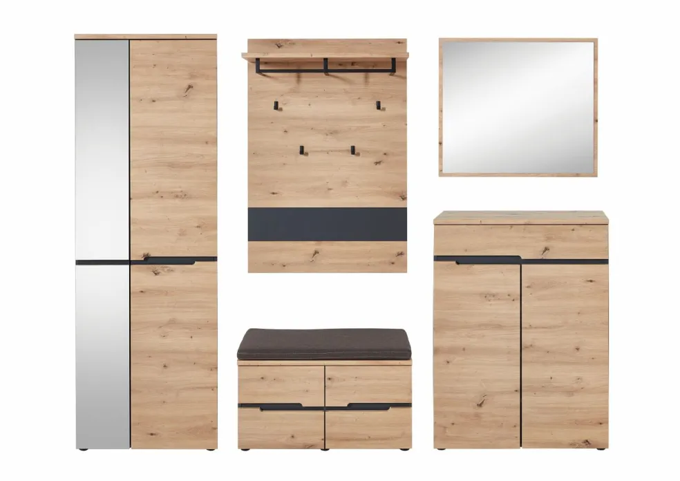 Façade : MDF décor chêne Artisan et contrastes ton graphite / miroir
