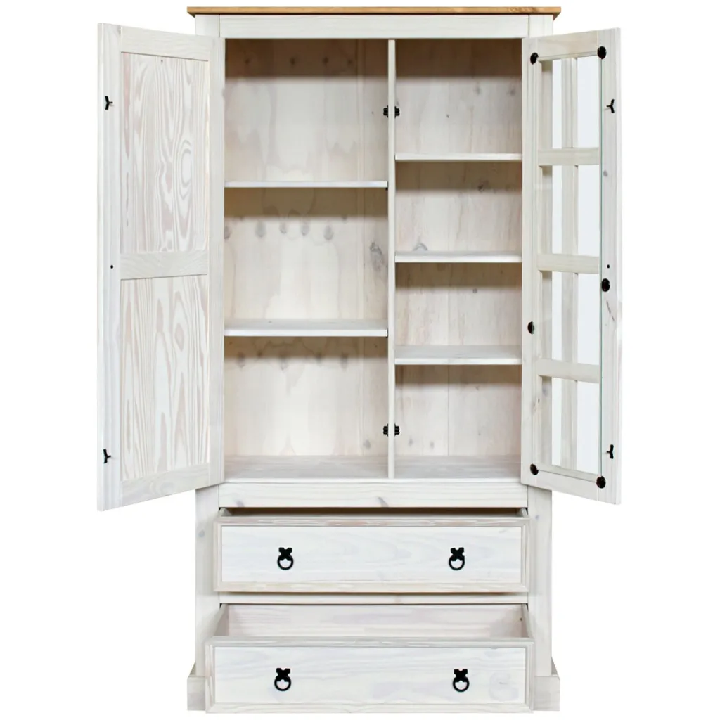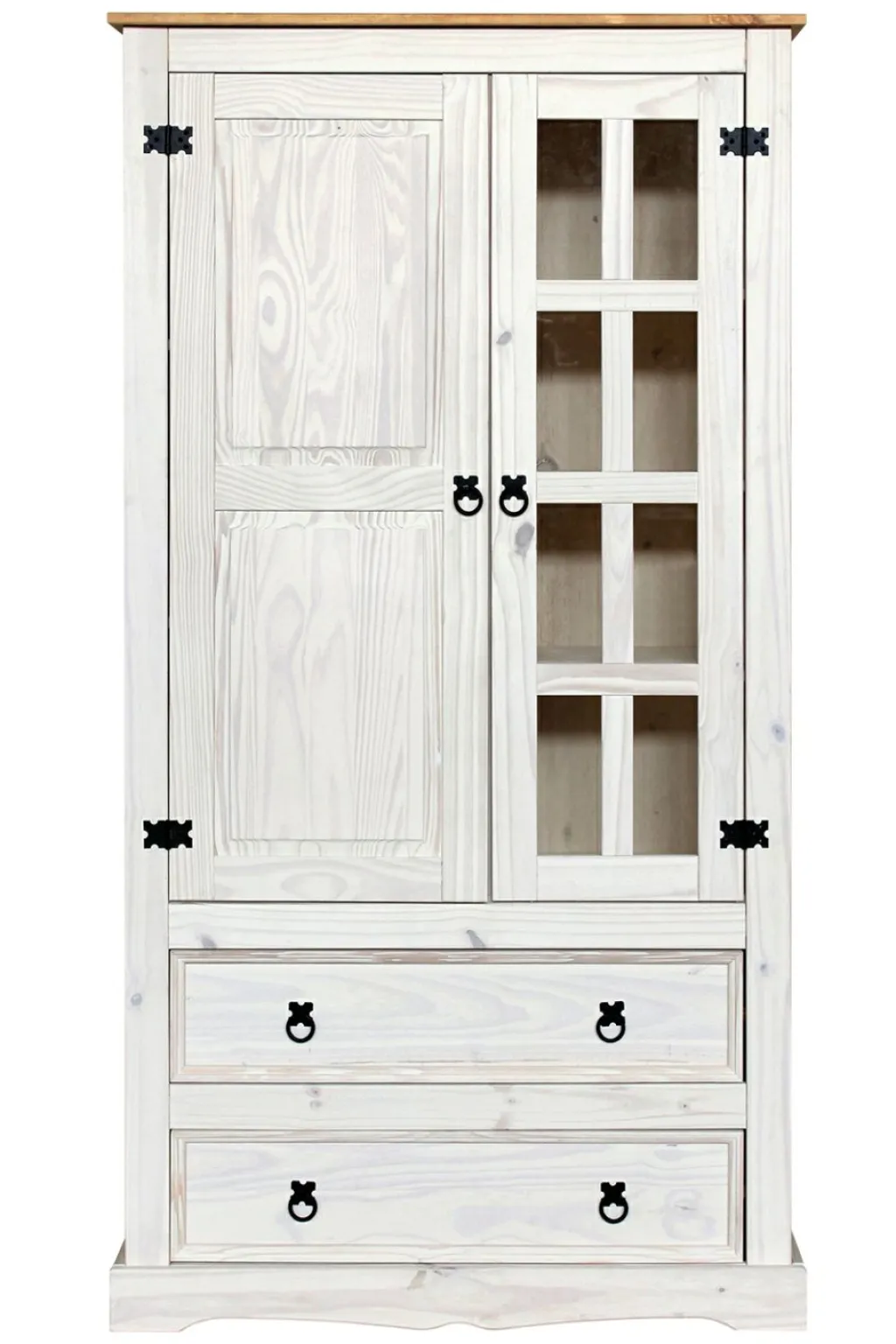 Pin massif (République tchèque) laqué ton blanc avec plateau supérieur ton miel
