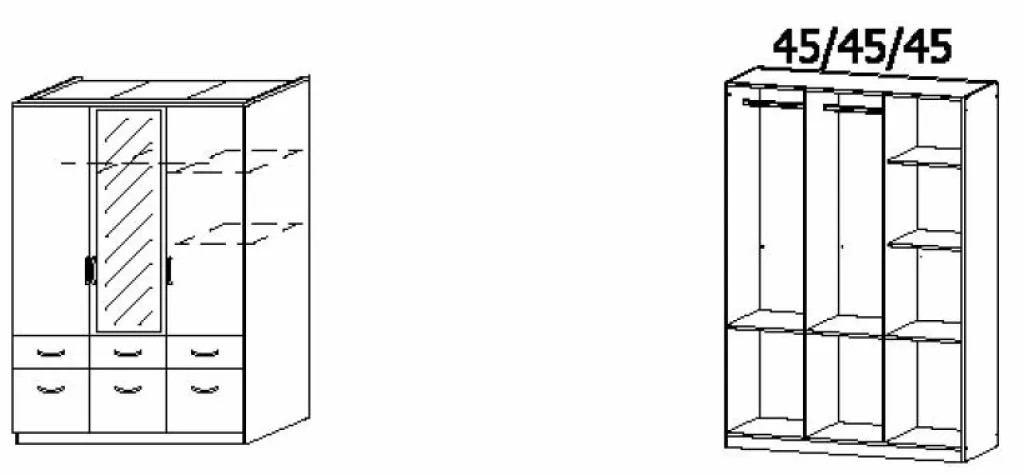 | Armoire à portes battantes | 136 | 199 | 58 |