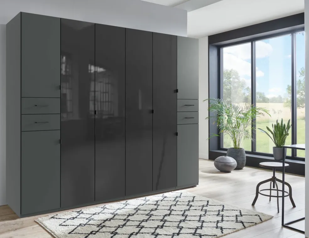 Portes centrales (entre les tiroirs) : verre noir