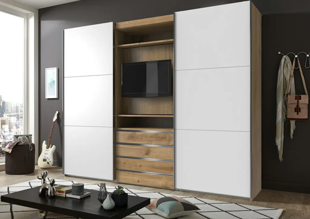 1 armoire à portes coulissantes avec support TV intégré