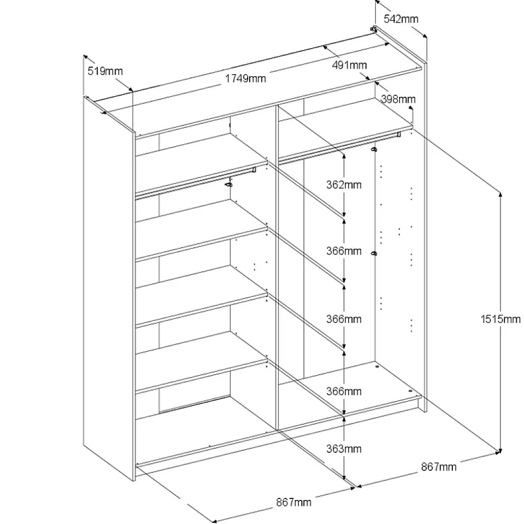 | Armoire à portes coulissantes | 178 | 203 | 59 |