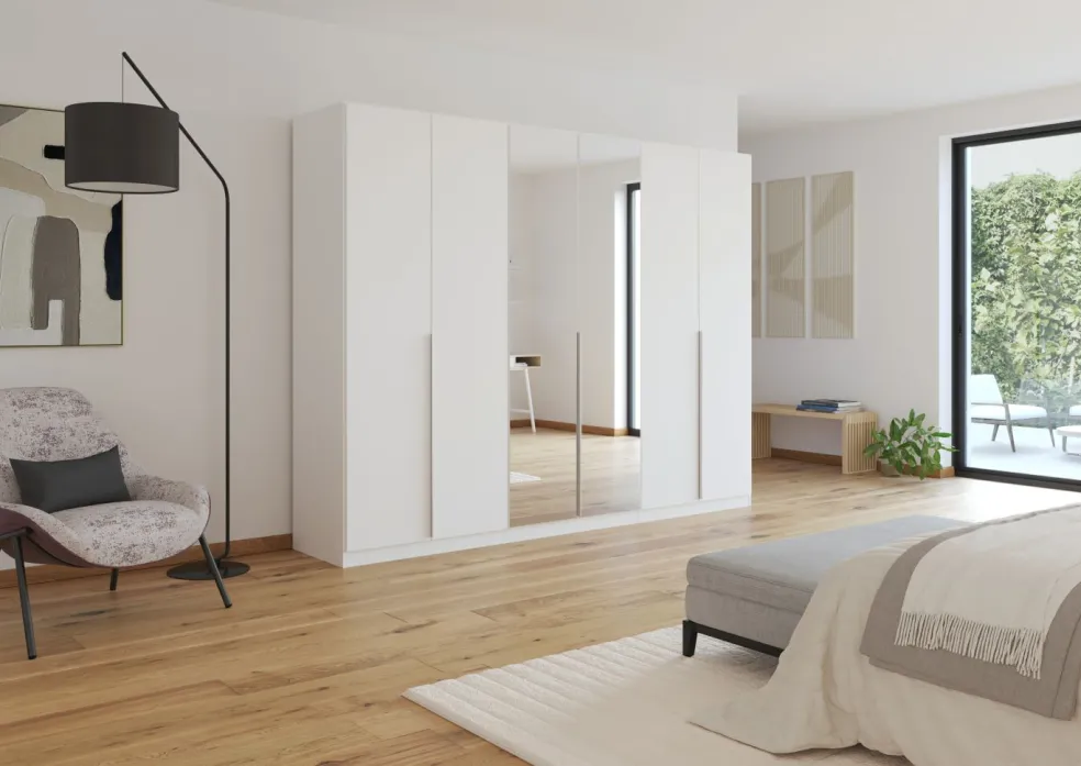 6 portes dont 2 portes au centre avec miroir