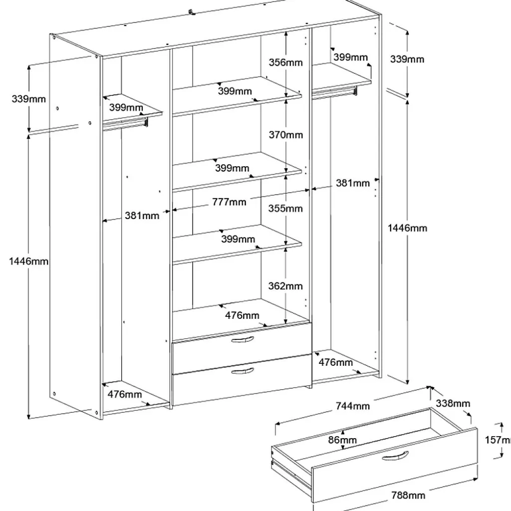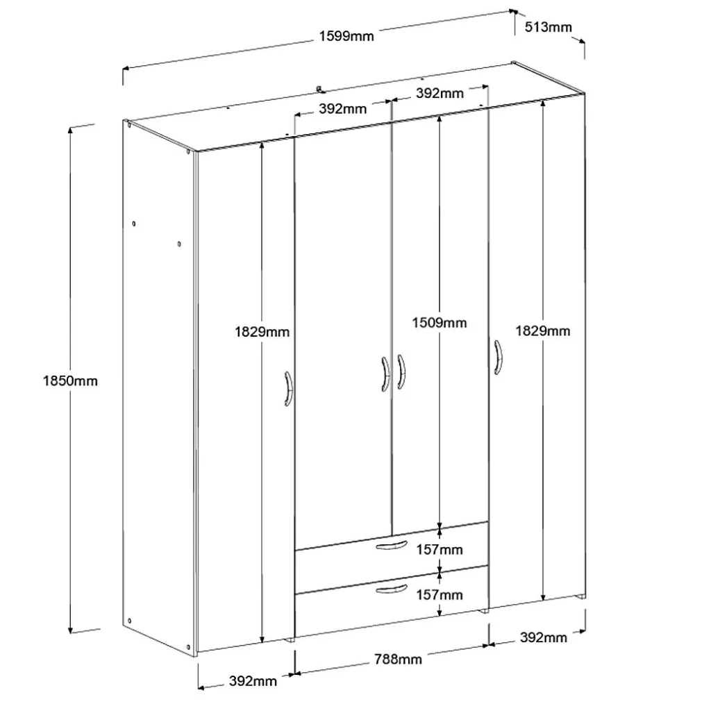 | Armoire à vêtements | 160 | 185 | 51 |
