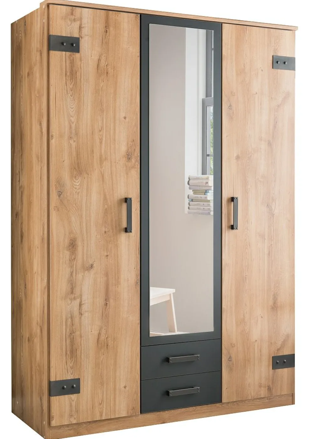 3 portes battantes, dont 1 porte au centre avec miroir