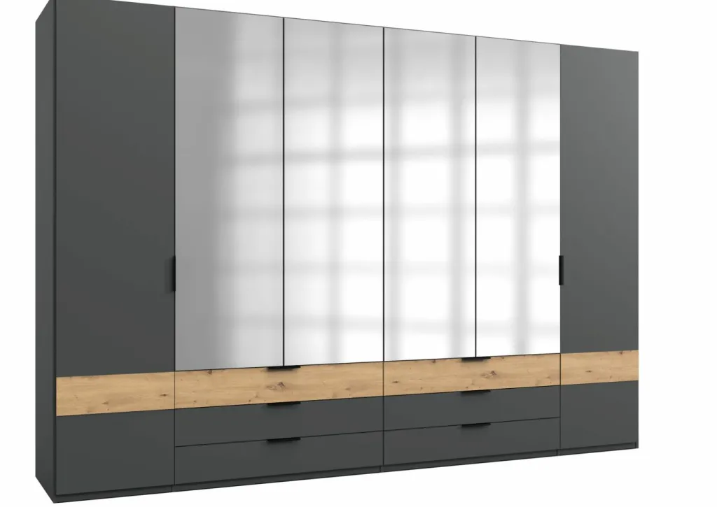 Caisson et façade : ton graphite avec contrastes décor chêne Artisan / miroir