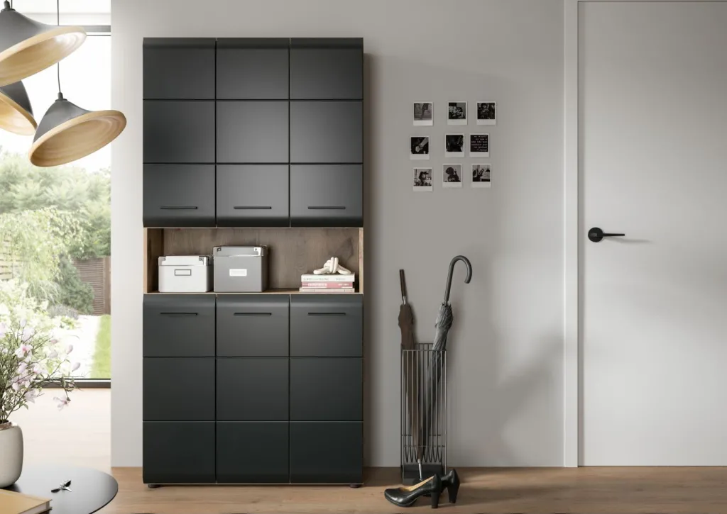Façade : MDF (panneaux de fibres de bois de densité moyenne) ton noir mat thermoformé