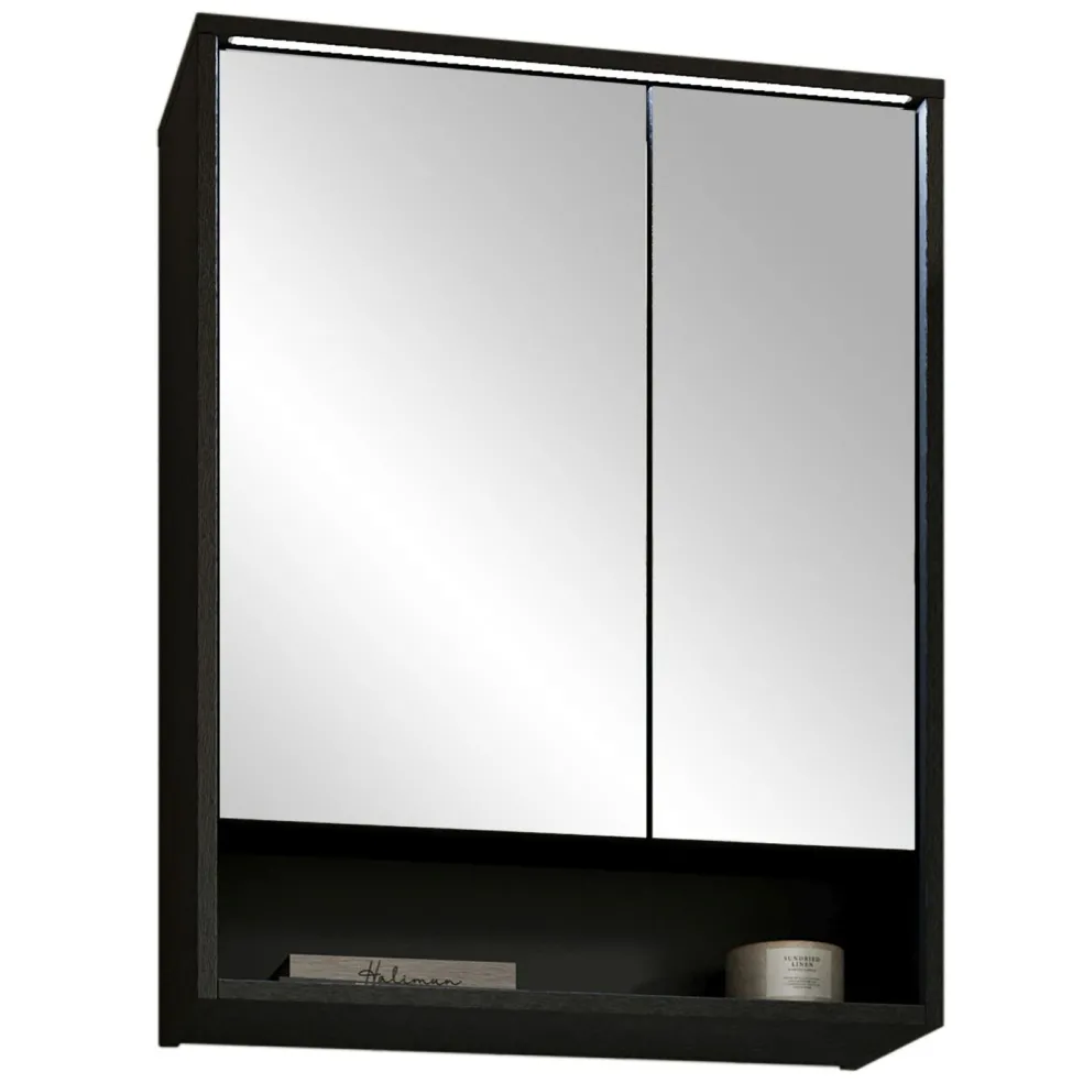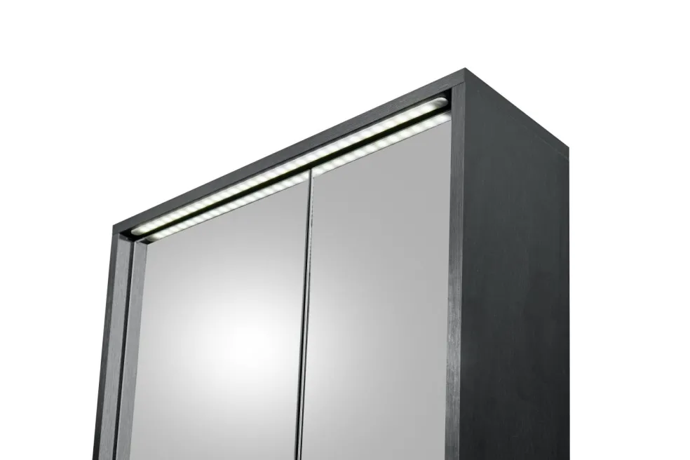 Façade : MDF (panneaux de fibres de bois de densité moyenne) thermoformé ton noir graphite, PPSM / miroir