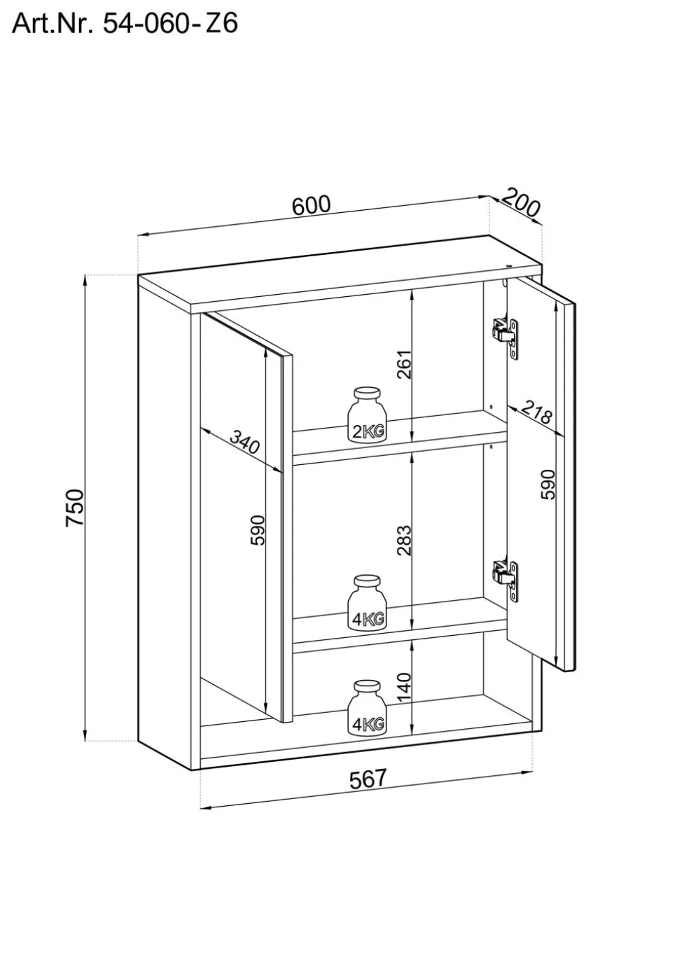 | Dimensions : | L/H/P env. 60/75/20 cm | ||