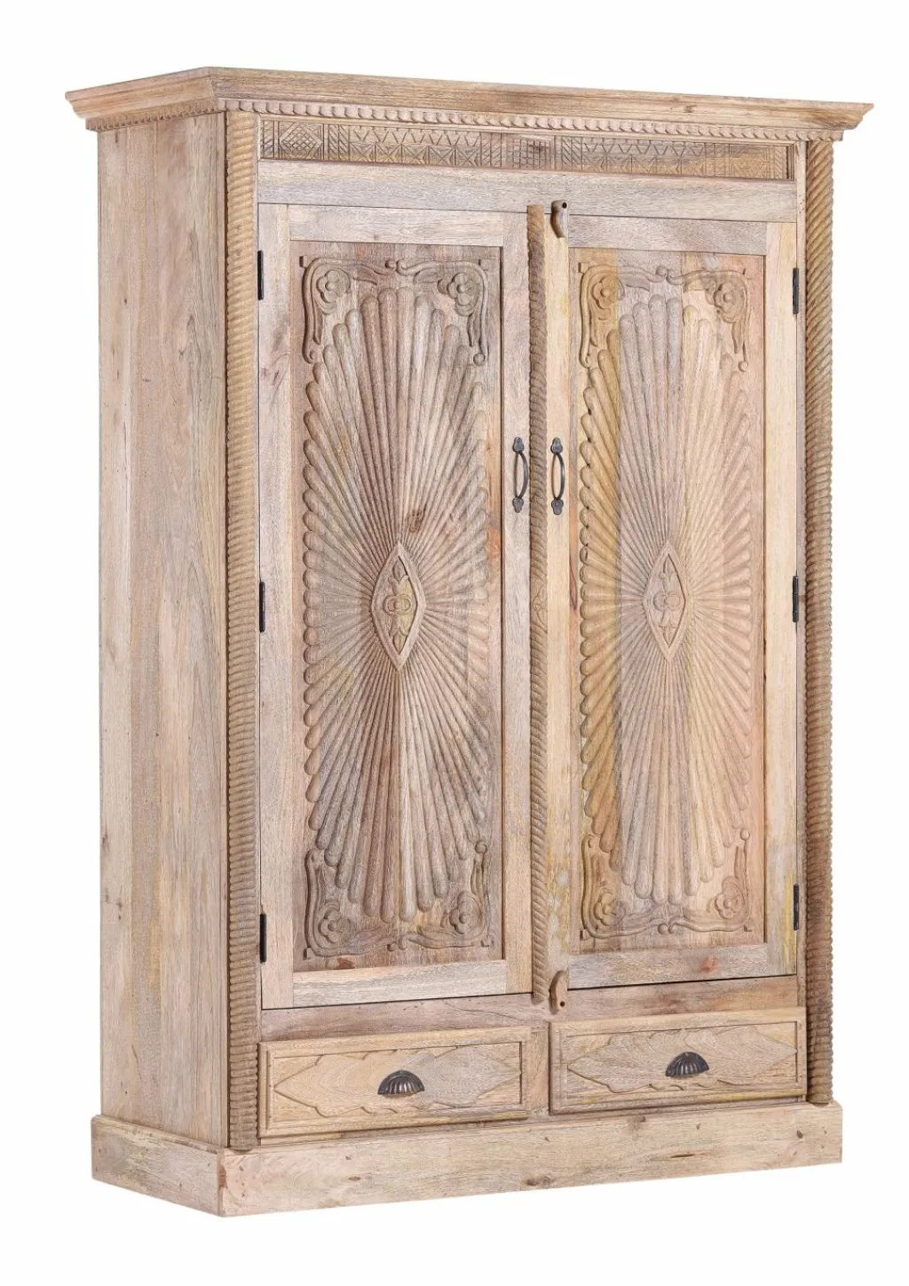 Bois de manguier massif (Asie) ton naturel, décapé et laqué