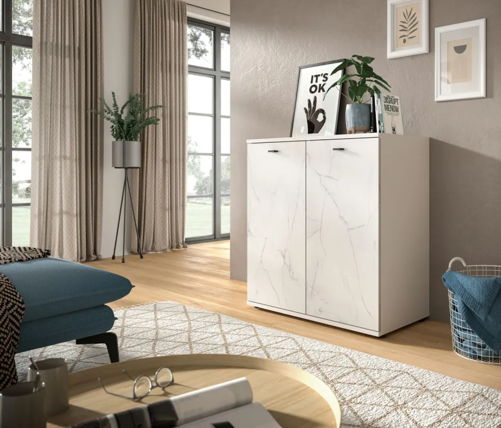Façade : décor marbre blanc