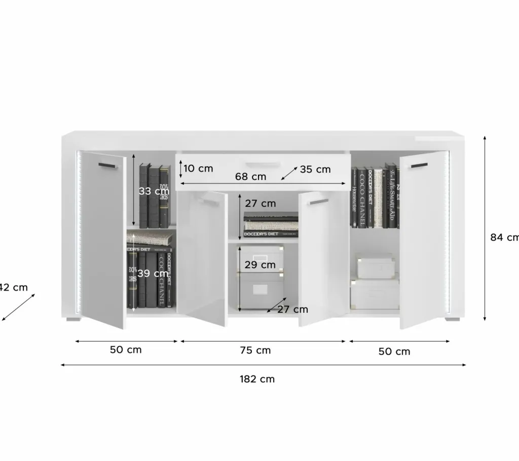 | Équipement Commodes Phono Bureau Étagère: | Portes, Tiroirs | ||