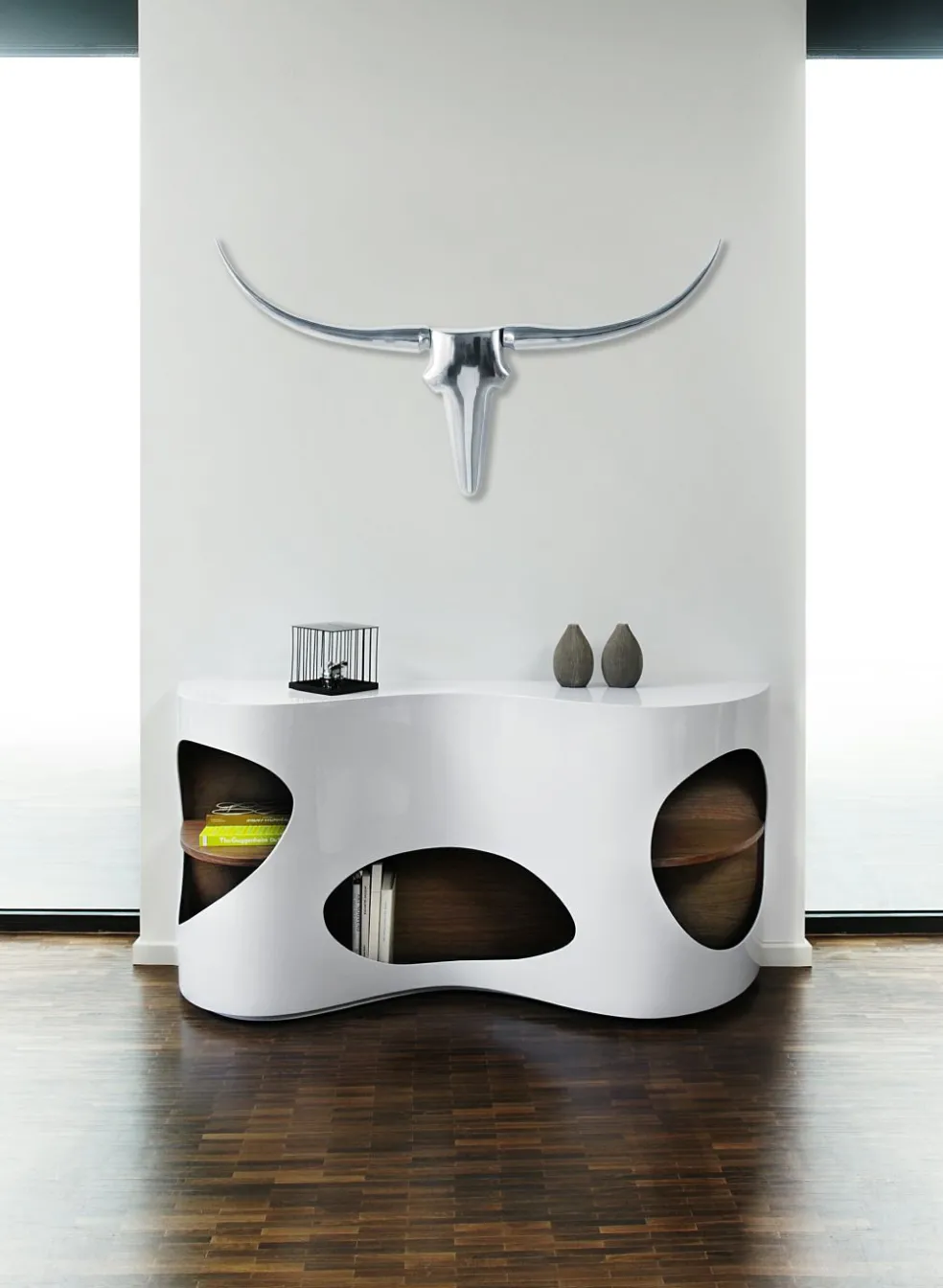 Extérieur : MDF (panneau de fibres de bois de densité moyenne) laqué ton blanc ultra brillant