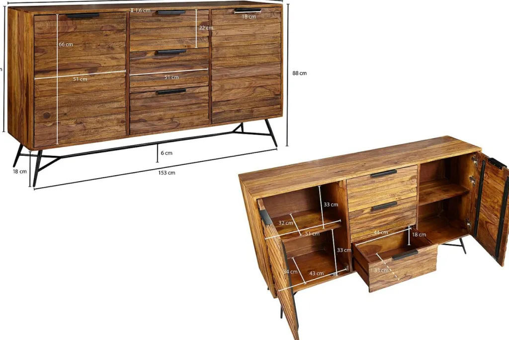 Caisson et façade : bois de sheesham massif (Inde)