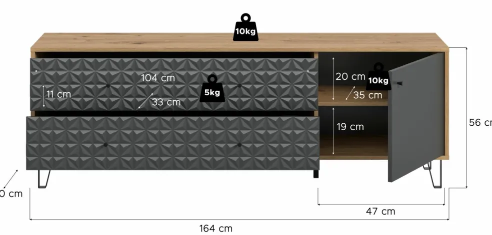 | Dimensions : | L/H/P env. 164/56/40 cm | ||