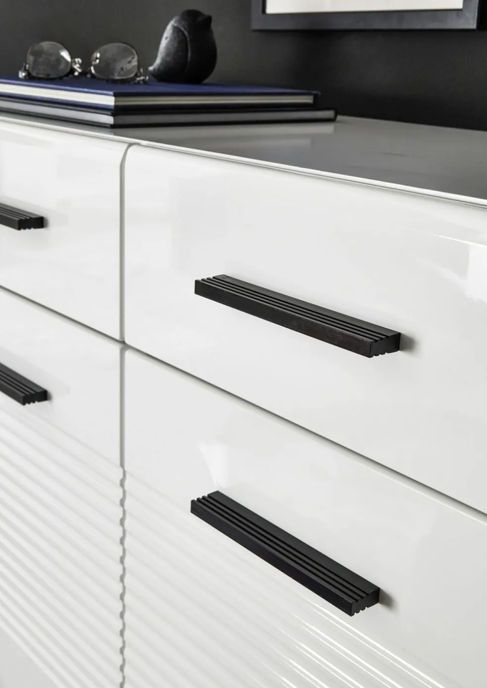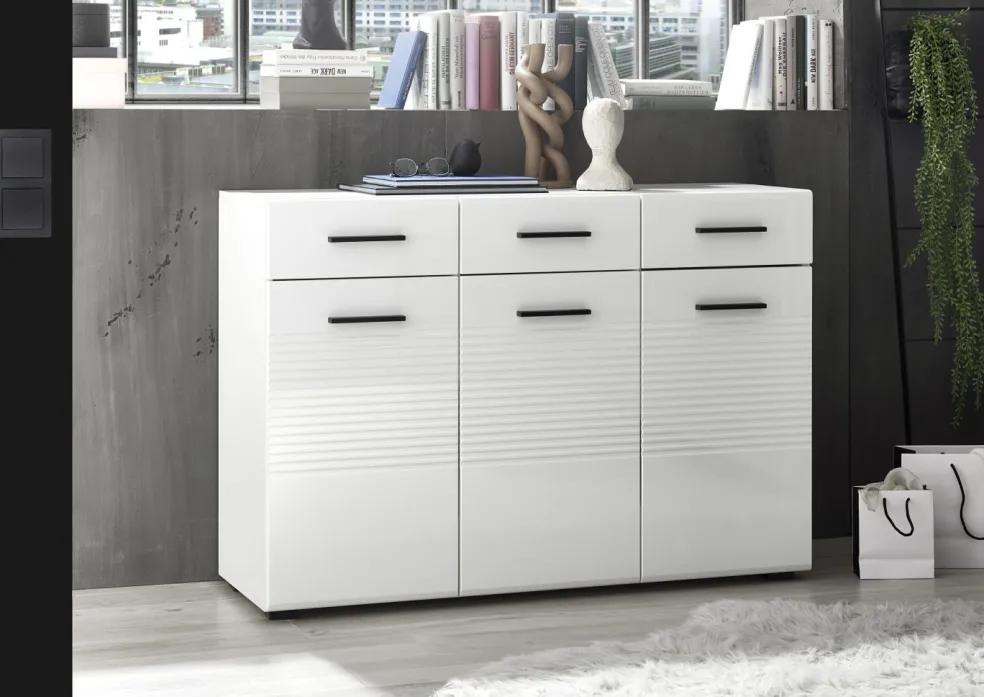 Façade : ton blanc ultra brillant thermoformé / MDF (panneaux de fibres de bois de densité moyenne)