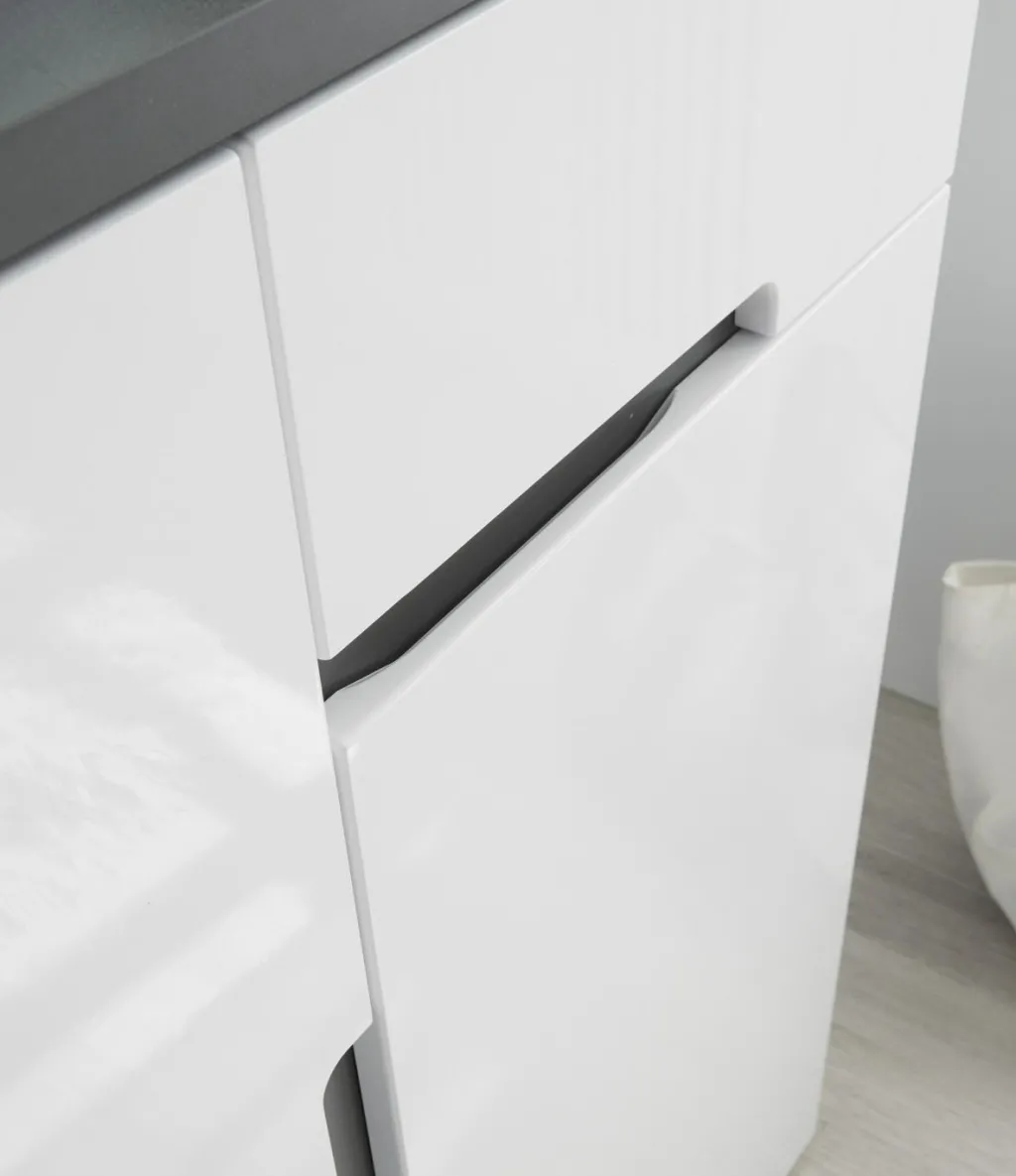 Façade : MDF (panneaux de fibres de bois de densité moyenne) ton blanc ultra brillant thermoformé