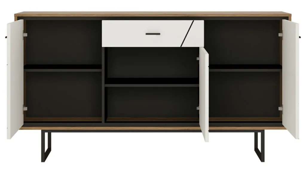 Façade : MDF PVC ton blanc brillant / MDF masse ton noir