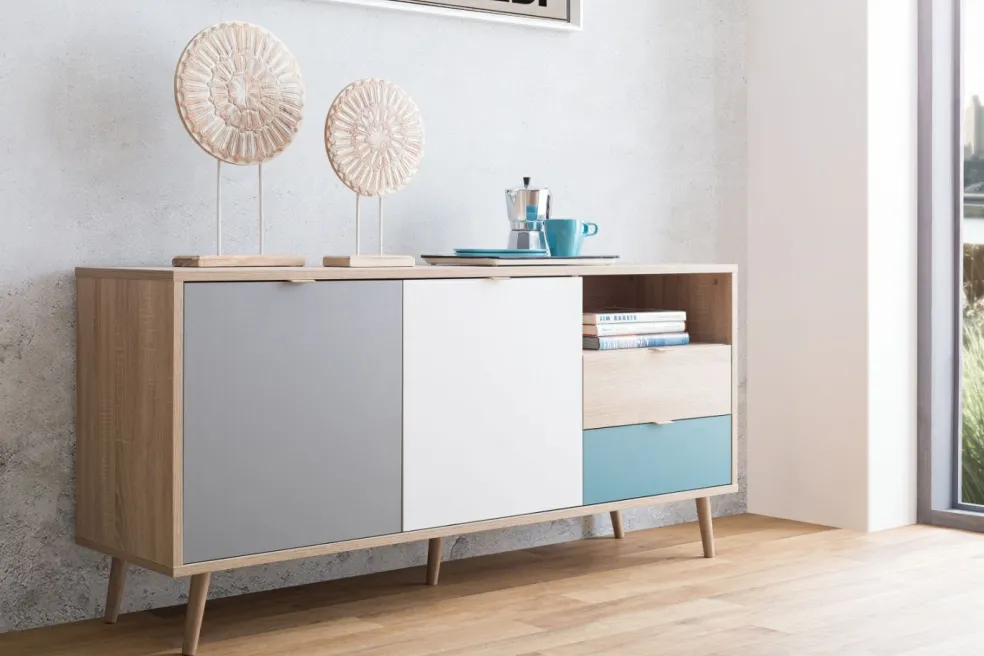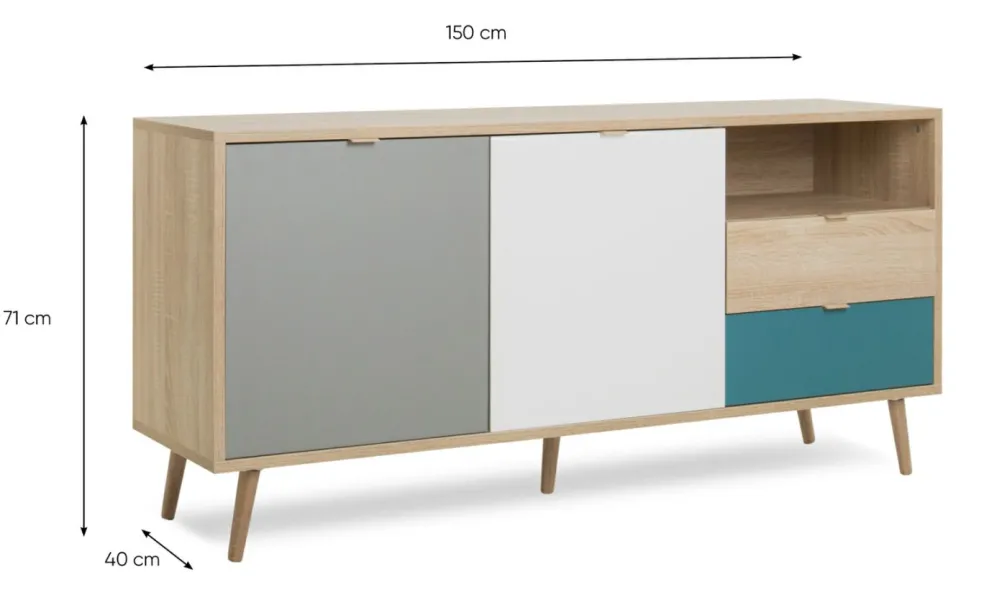 Façade : imitation chêne Sonoma / blanc / bleu pétrole / gris