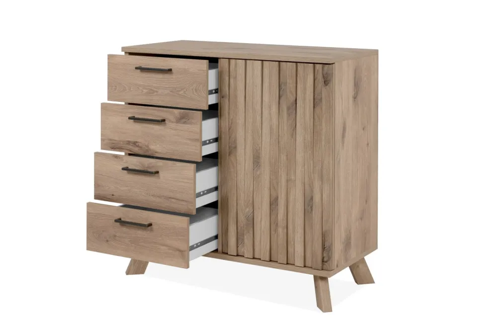À gauche : 4 tiroirs avec façades lisses