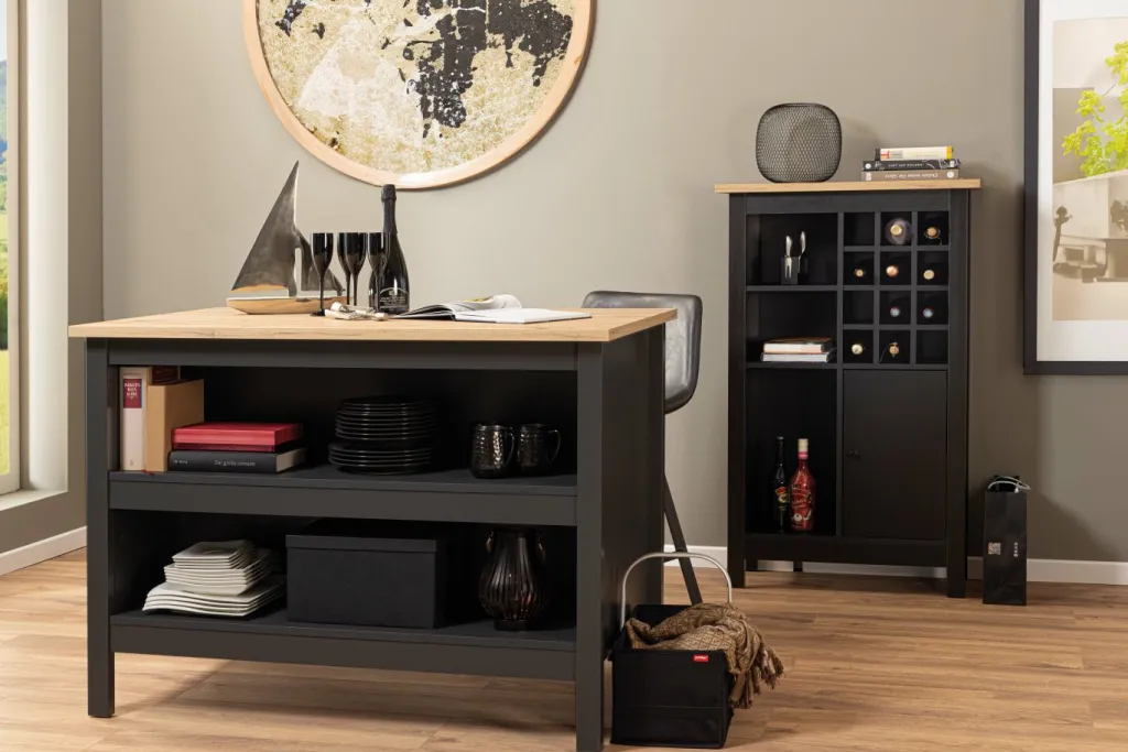 ton noir avec panneau supérieur en MDF décor chêne Artisan