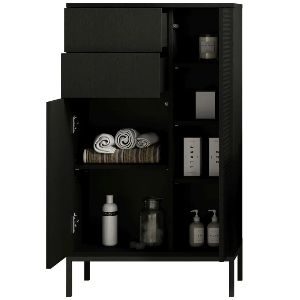 Façade : MDF (panneaux de fibres de bois de densité moyenne) thermoformé ton noir graphite, PPSM