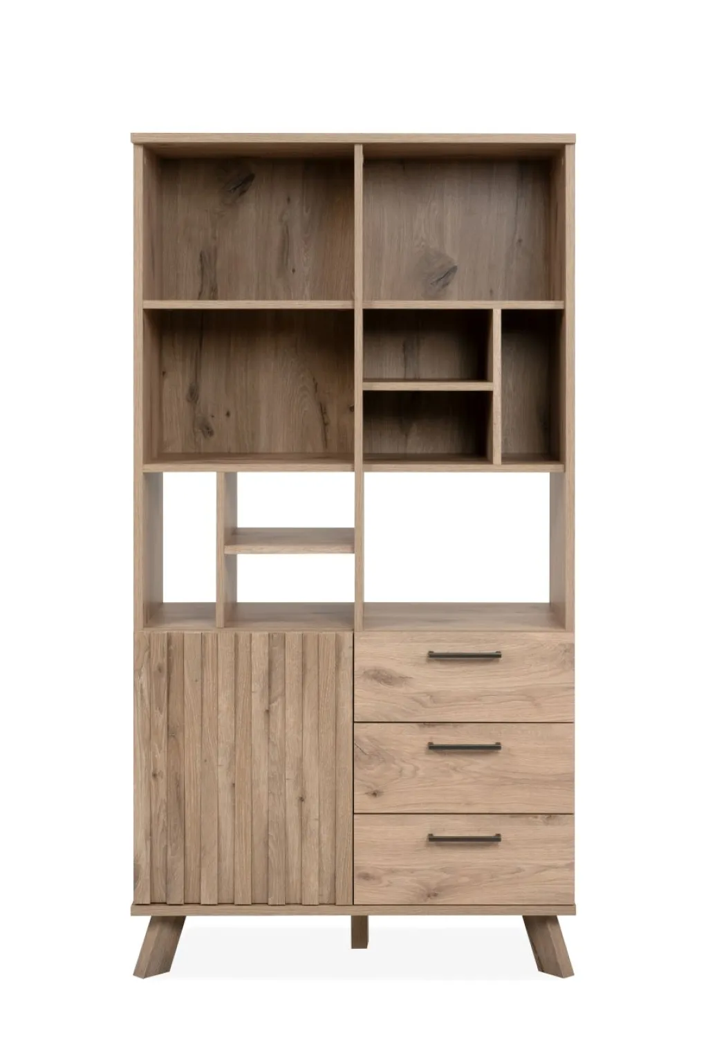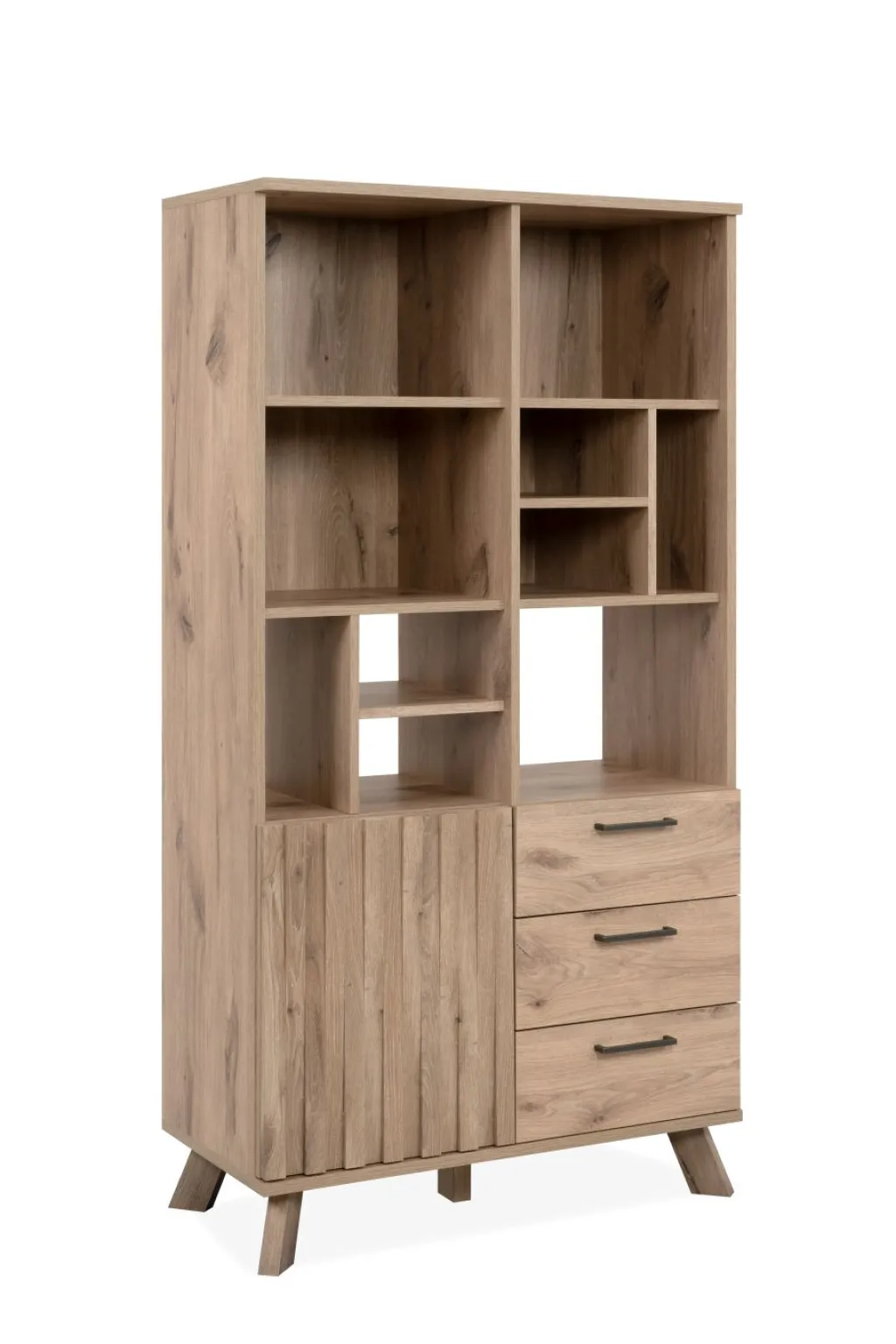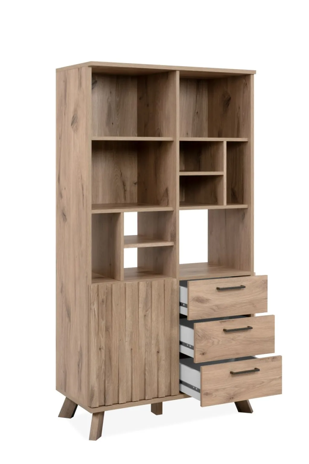En bas à gauche : 1 porte avec effet relief 3D et ouverture par simple pression ; derrière elle, 1 tablette amovible
