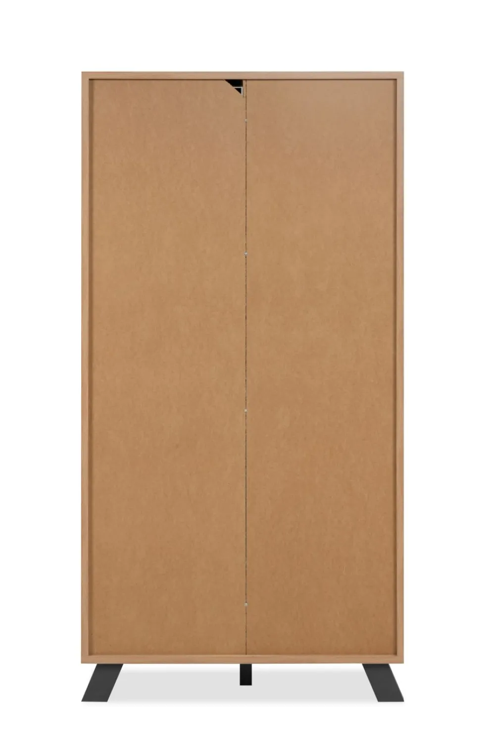À droite : 1 porte avec des lamelles et, derrière elle, 3 tablettes amovibles