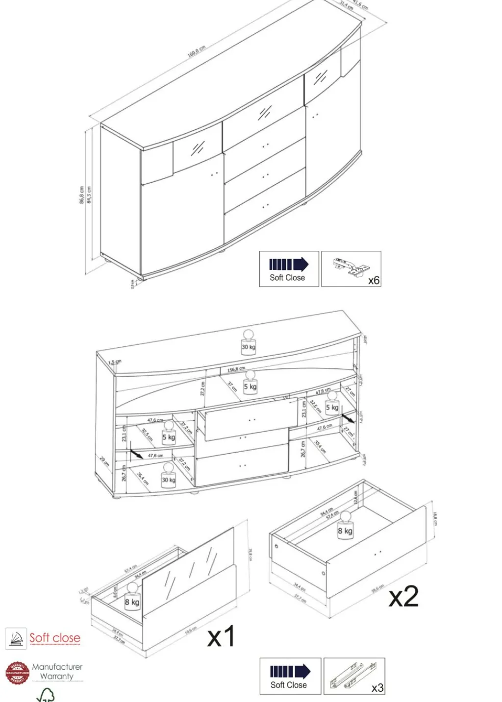 | Dimensions : | L/H/P env. 160/86,8/41,6 cm | ||