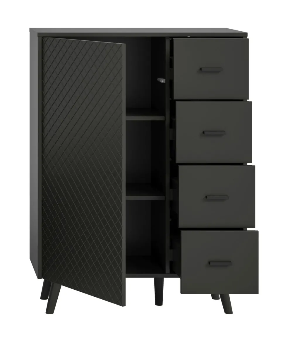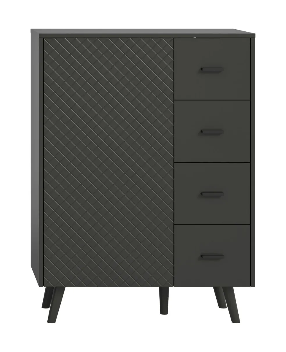 Façade : MDF ton gris mat (panneaux de fibres de bois de moyenne densité) thermoformé
