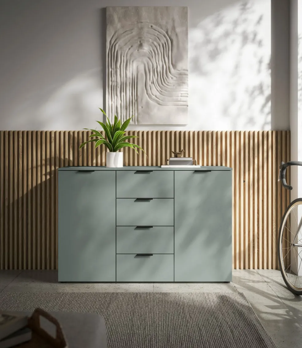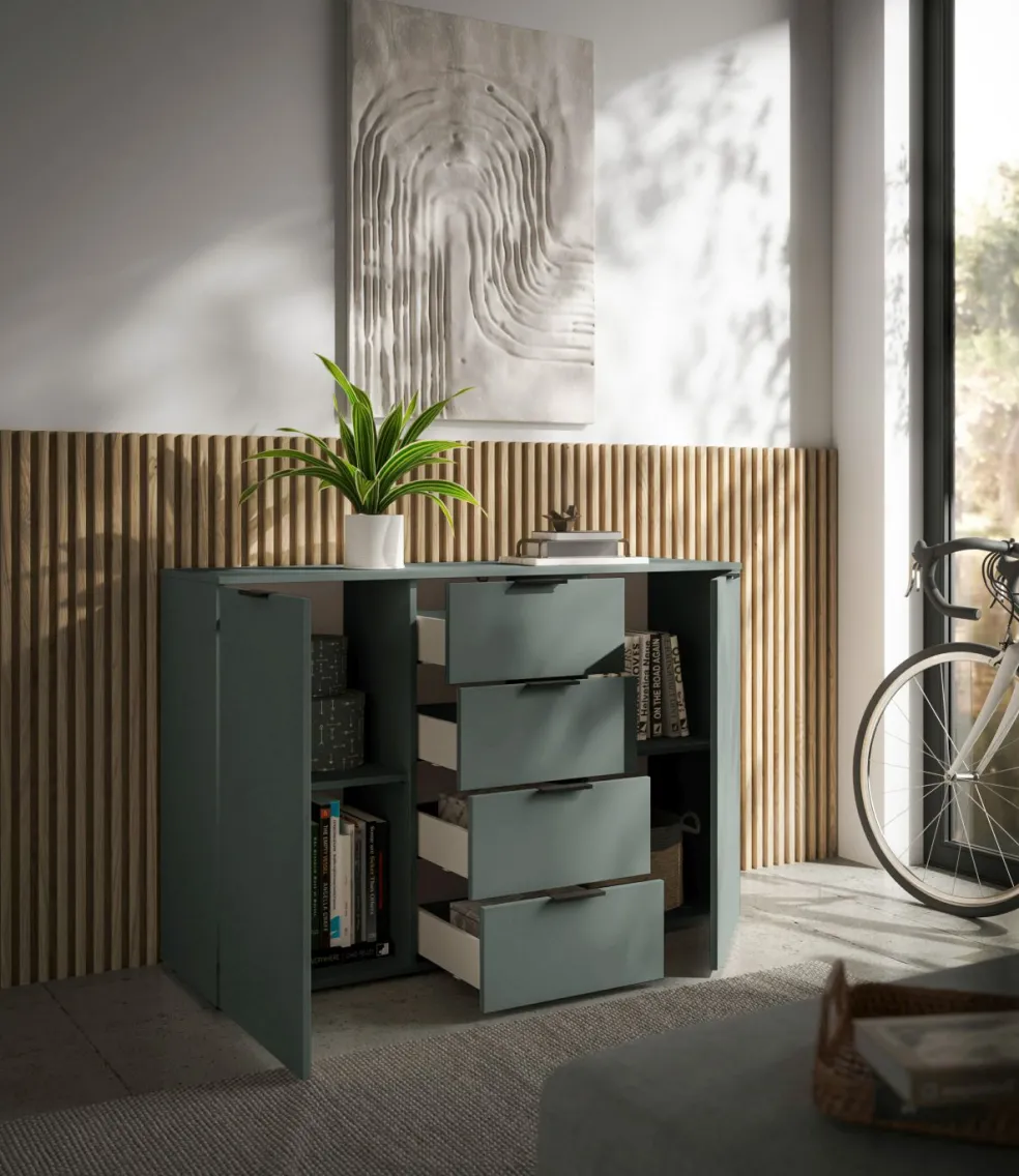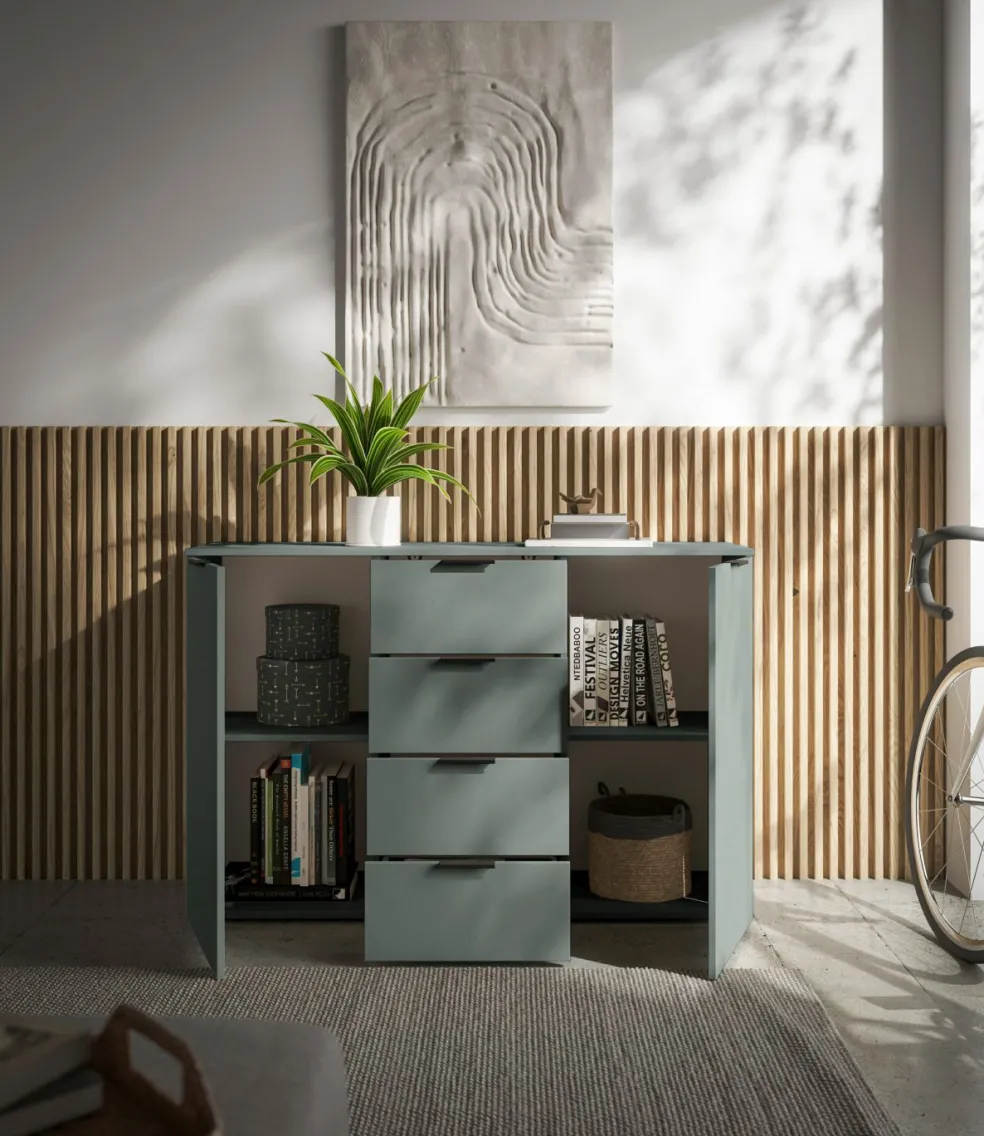 Caisson : ton sauge, panneau de particules surfacé et mélaminé (PPSM)