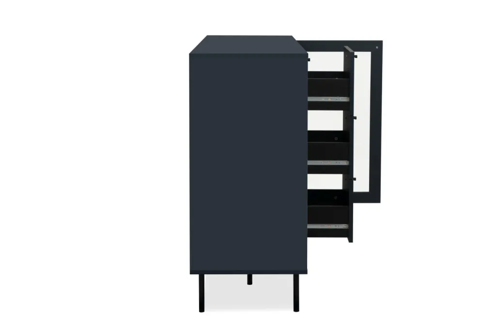 Façade : ton bleu navy (marine) / verre