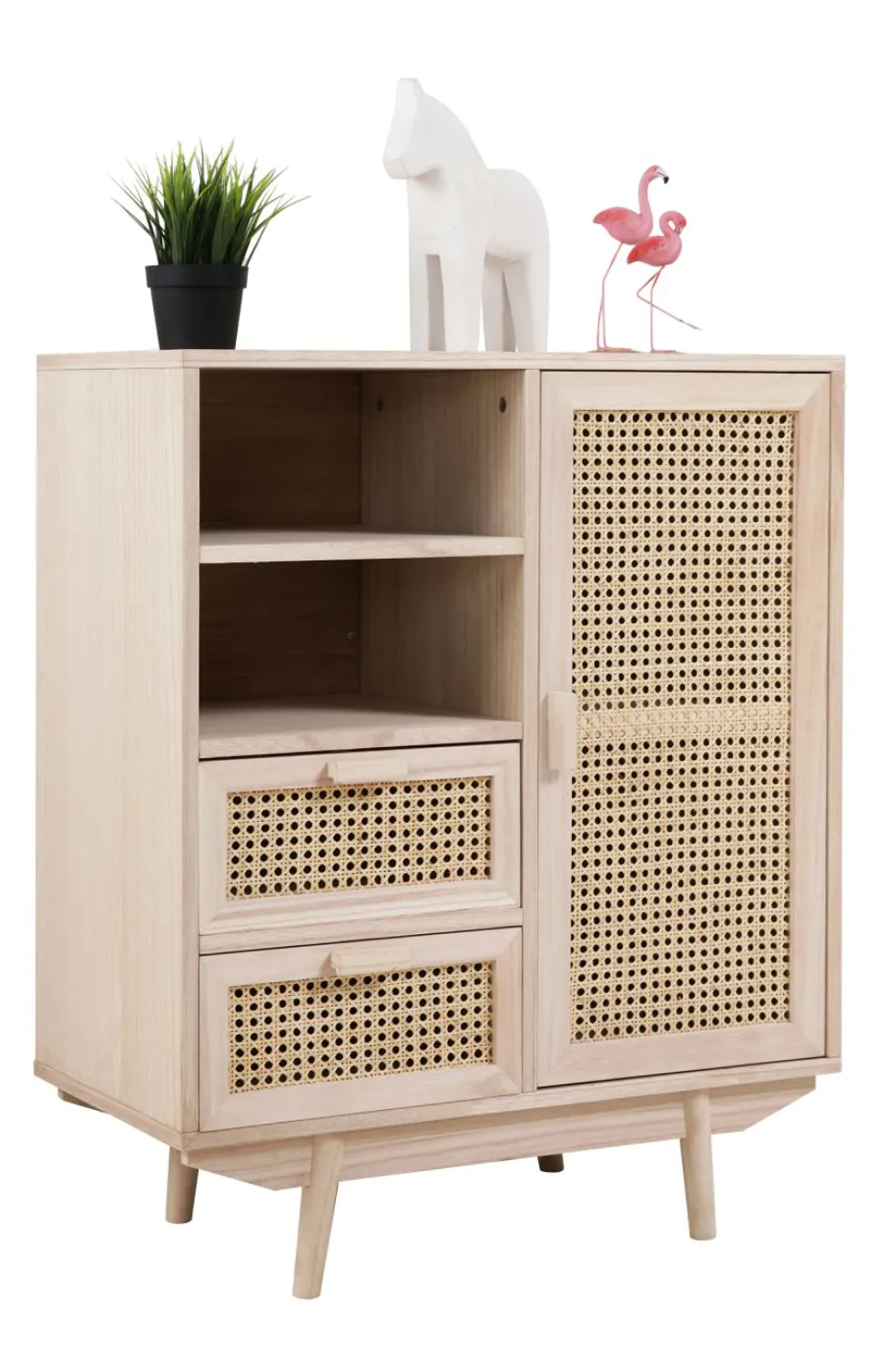 MDF (panneaux de fibres de bois de densité moyenne) et placage en bois de paulownia (Chine) avec façade en cannage