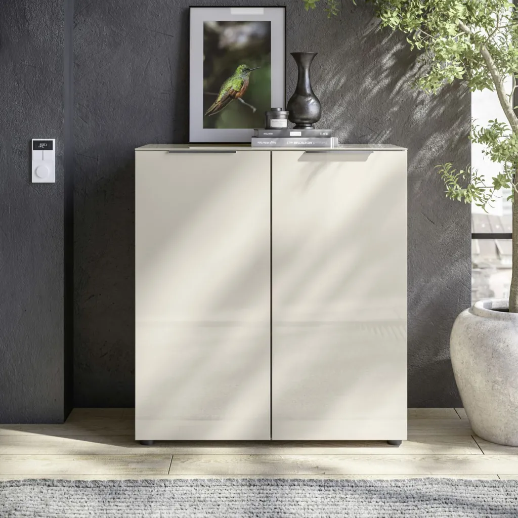 Caisson : ton cachemire, panneaux de particules surfacés et mélaminés (PPSM), tablette en verre lisse