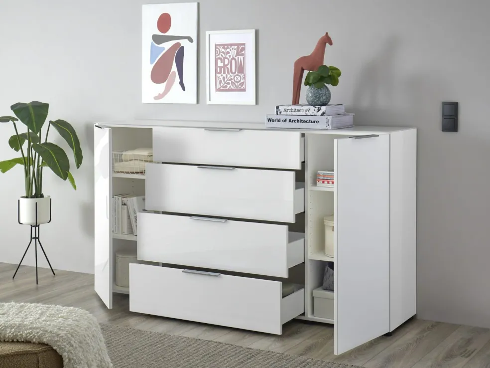 4 tiroirs avec fermeture amortie et coulisses sous tiroirs