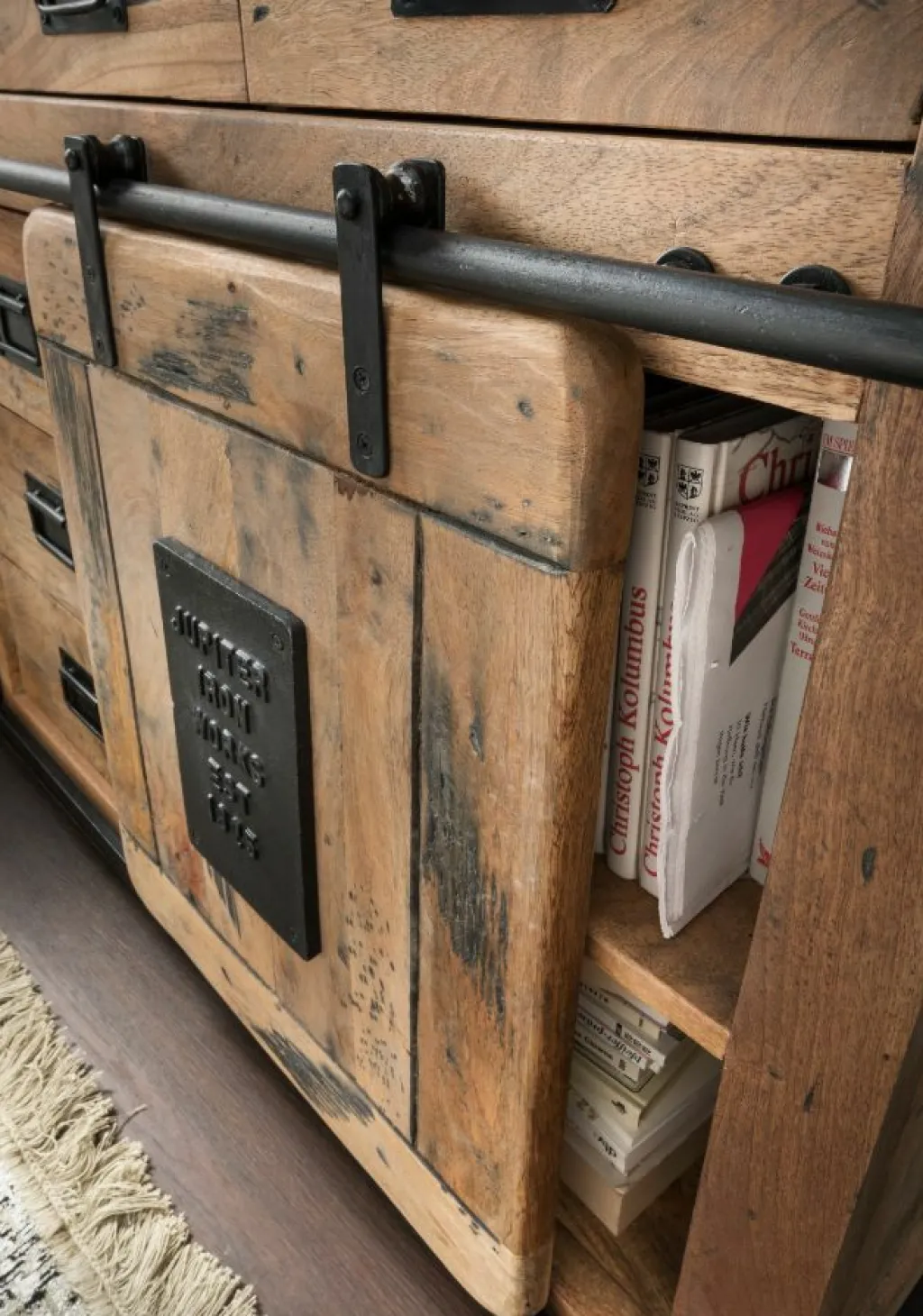 Caisson et façade : bois de manguier massif ( Inde), surface traitée aspect vintage