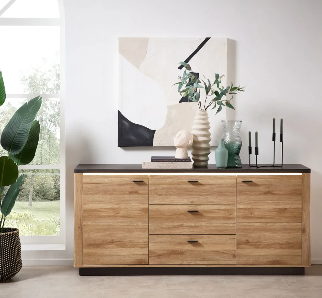 Caisson : décor chêne Mauvella avec contrastes décor chêne carbone foncé