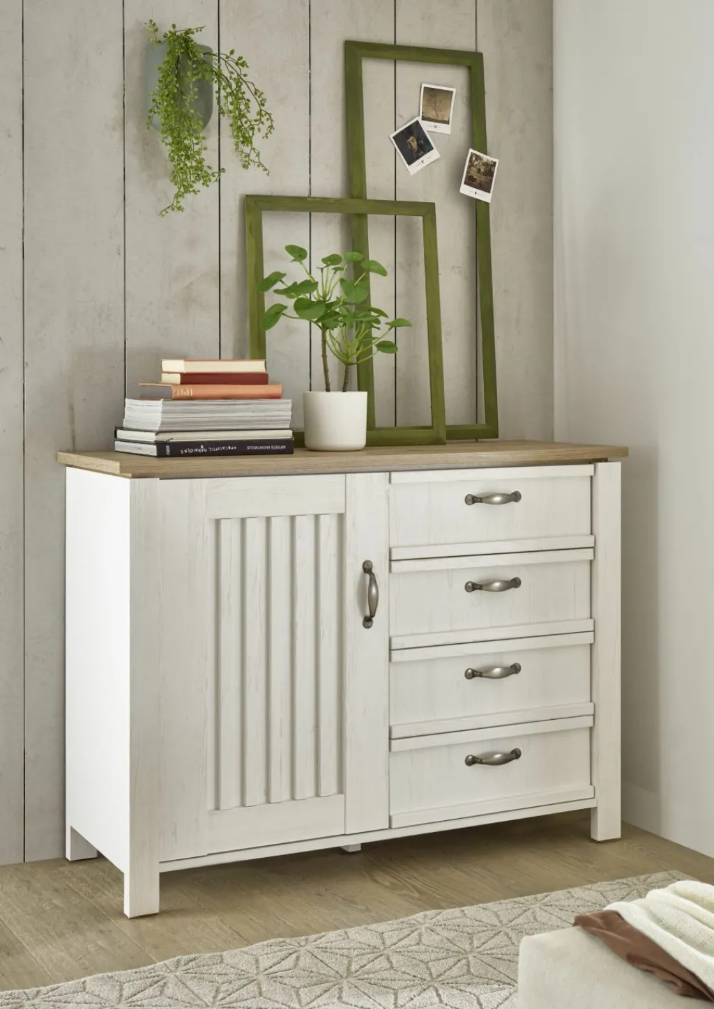 Caisson et façade : décor pin Andersen et panneau supérieur décor chêne Artisan