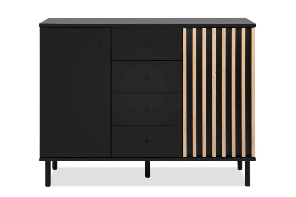 Façade : ton noir (avec traitement anti-traces de doigts) et lamelles décor chêne Artisan (aspect 3D)