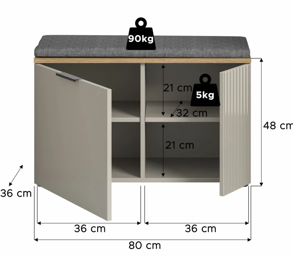 | Banc à chaussures | 80 | 48 | 36 |