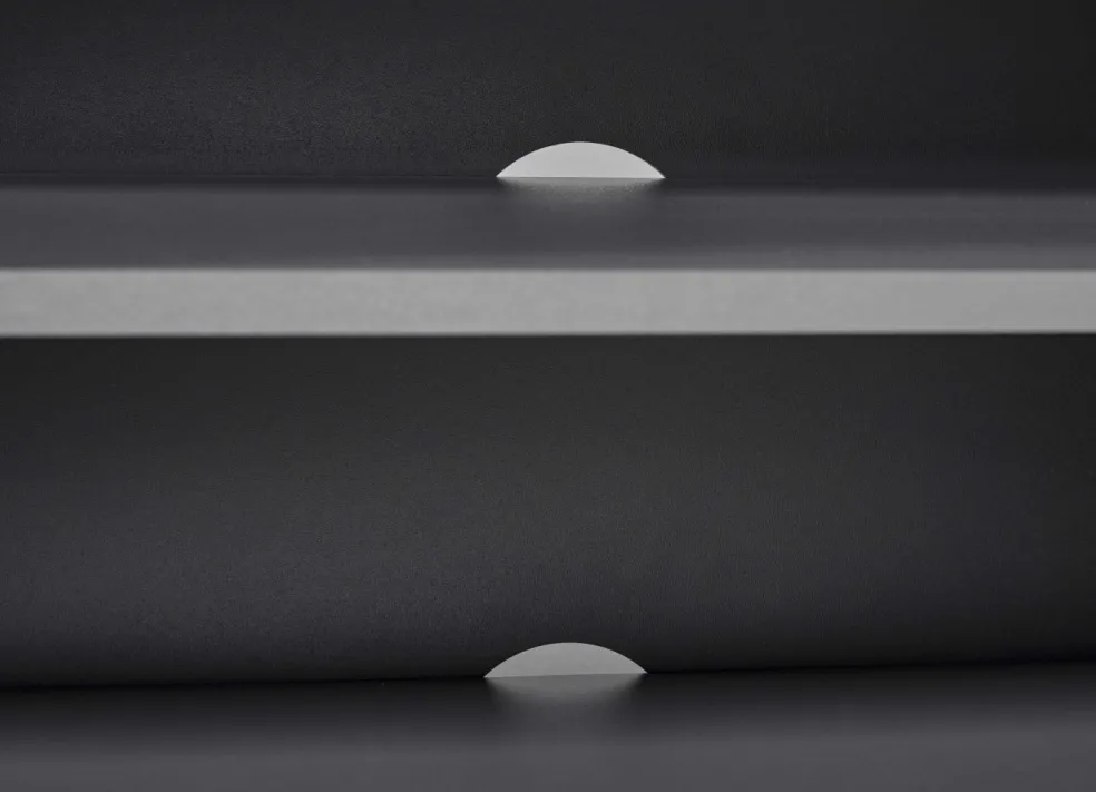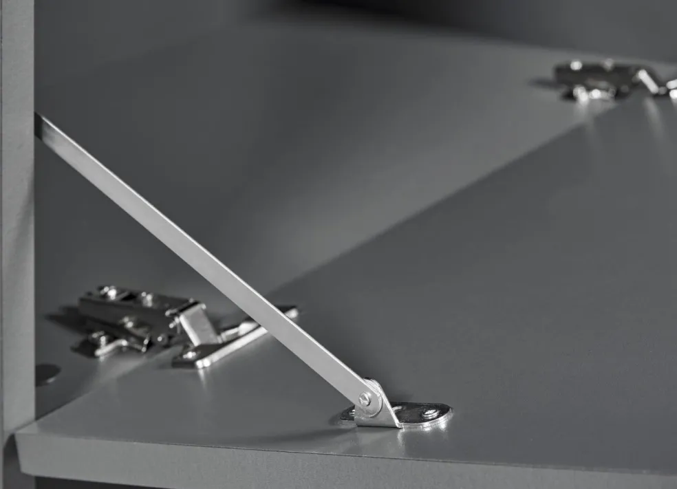 Caisson et façade : en panneaux de particules surfacés mélaminés (PPSM) robustes, ton gris graphite