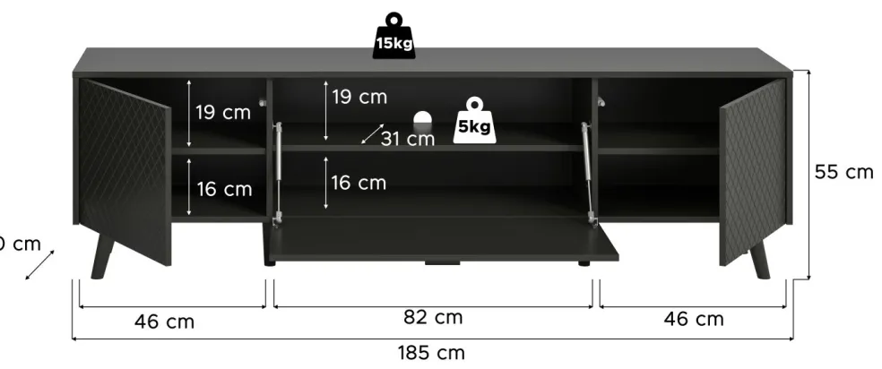 | Dimensions : | L/H/P env. 185/55/40 cm | ||