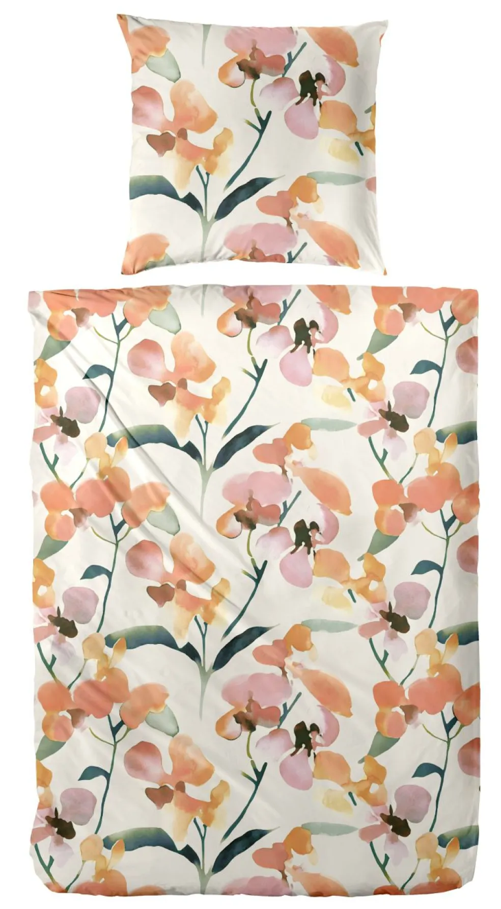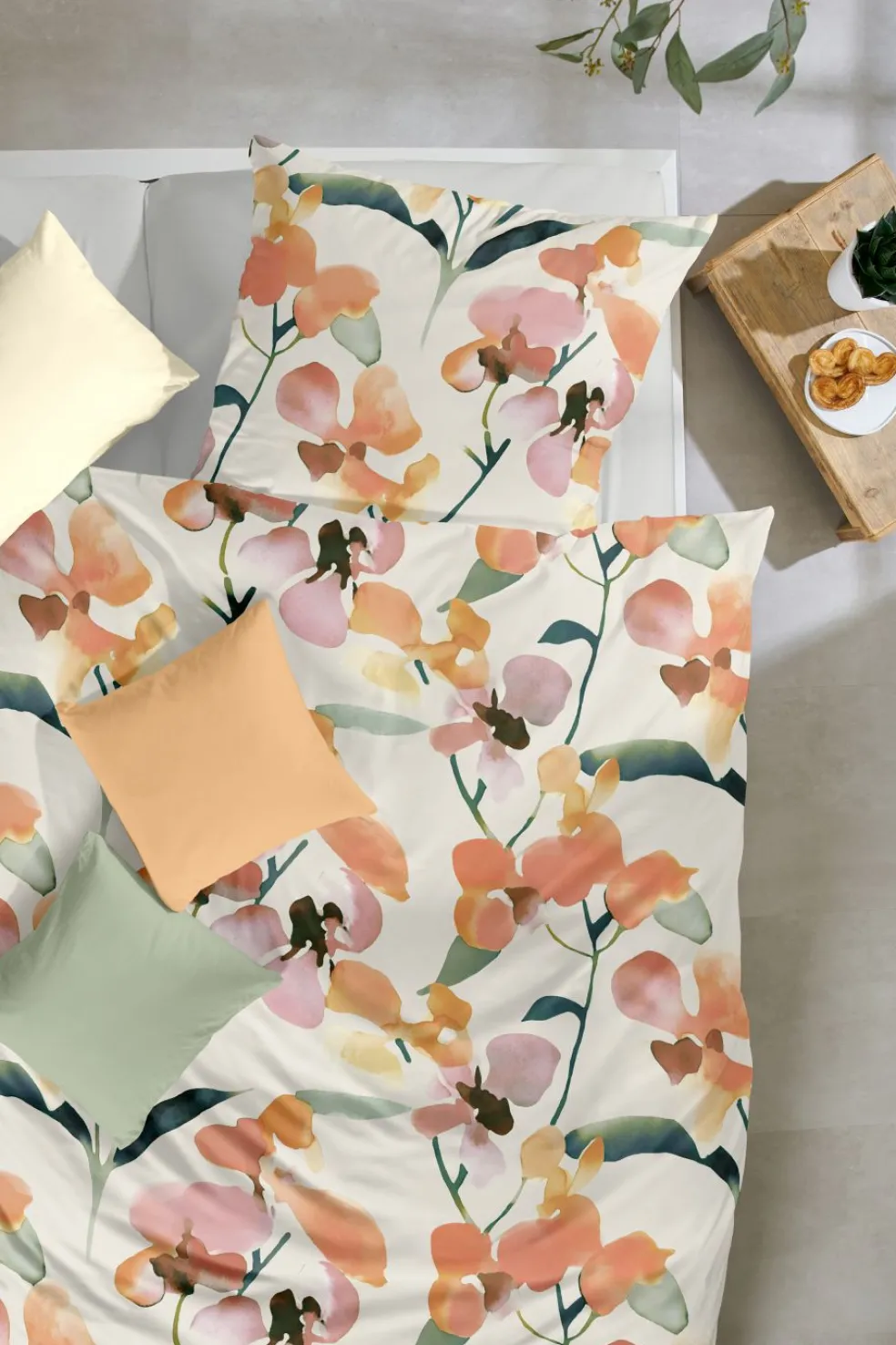 Farbe: florales Muster in warmen rosa, orange und beige Tönen